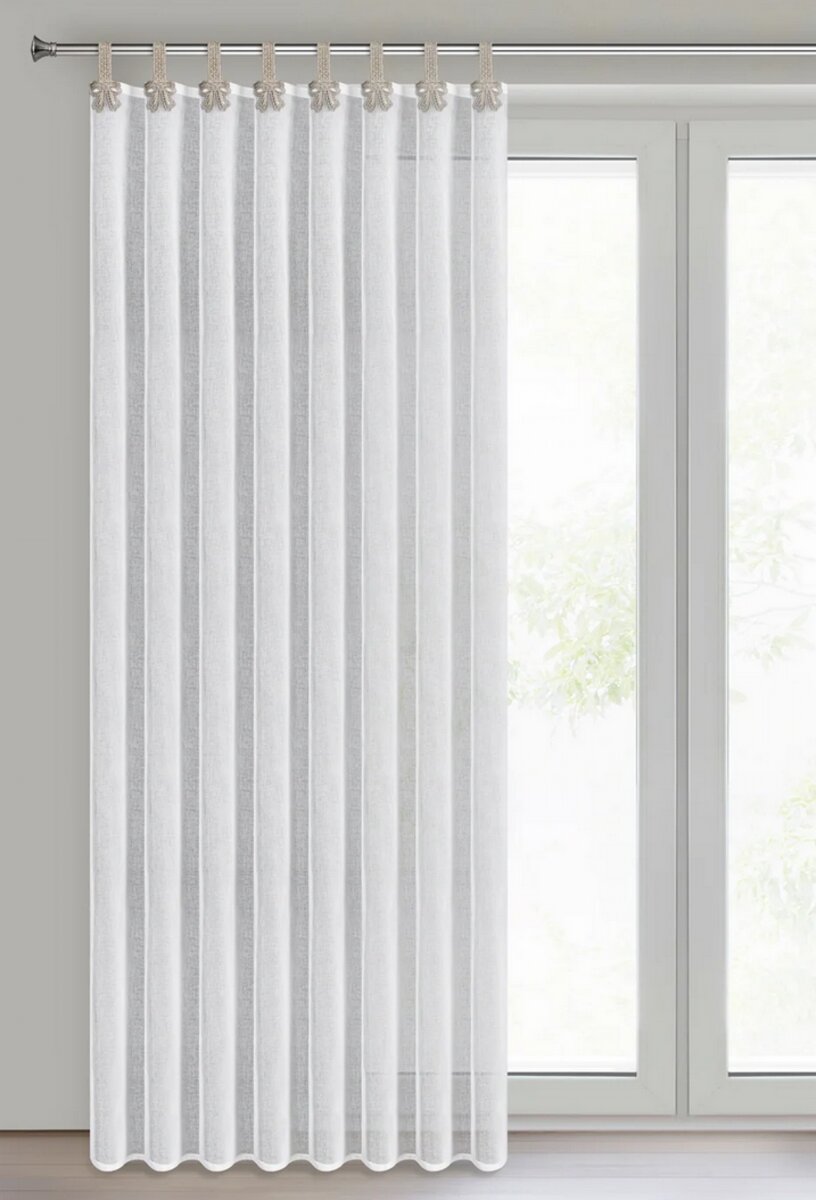 Kvalitní hotová dekorační záclona režného vzhledu vyrobená ve vysoké jakosti v moderním a trendovém provedení do ložnice nebo obývacího pokoje o rozměru 140x250 cm s poutky pro tyčovou gárnyž. 1 kus v balení. Záclona je opatřena širokými poutky, které jsou zdobeny mašlí a dodávají mu romantický, dekorativní nádech.