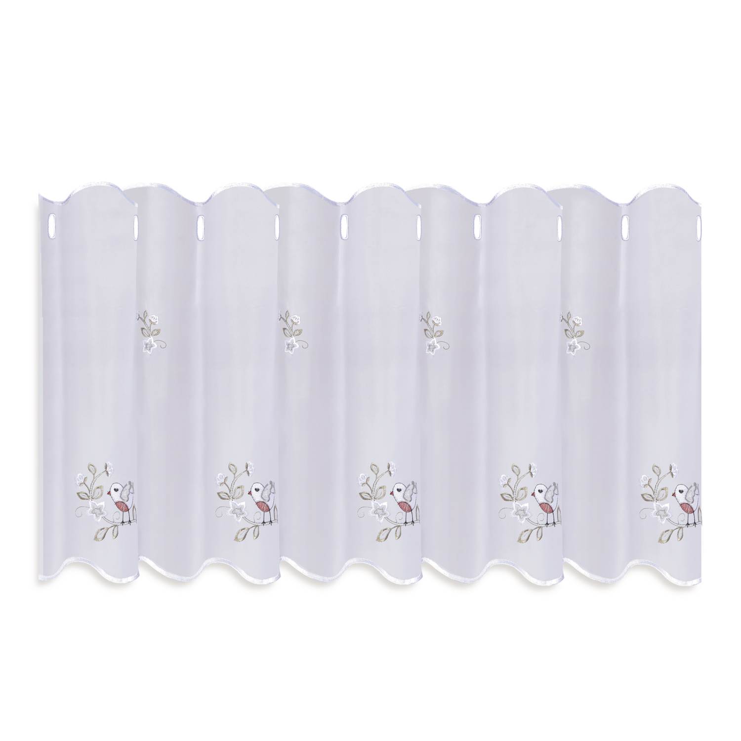 Záclonka bistro s výšivkou, ptáček - bílá/hnědá, 50 mm, 145 mm
