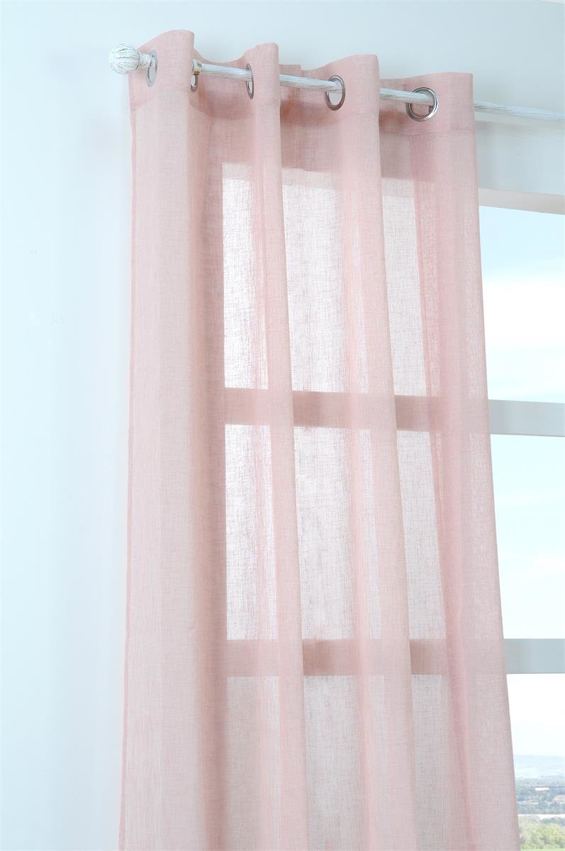 Dekorační záclona s kroužky režného vzhledu PALOMA růžová 140x260 cm (cena za 1 kus) France