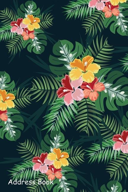 Address Book: For Contacts, Addresses, Phone, Email, Note, Emergency Contacts, Alphabetical Index with Green Leave and Tropical (anglicky)