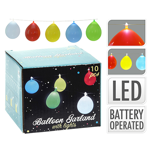 Reťaz s 10 LED balónmi - každý balón obsahuje 1 LED žiarovku.Celková dĺžka reťaze je 4,15 m.Napájanie je na batérie 3x AA 1,5V (nie sú súčasťou balenia). prečítať celé