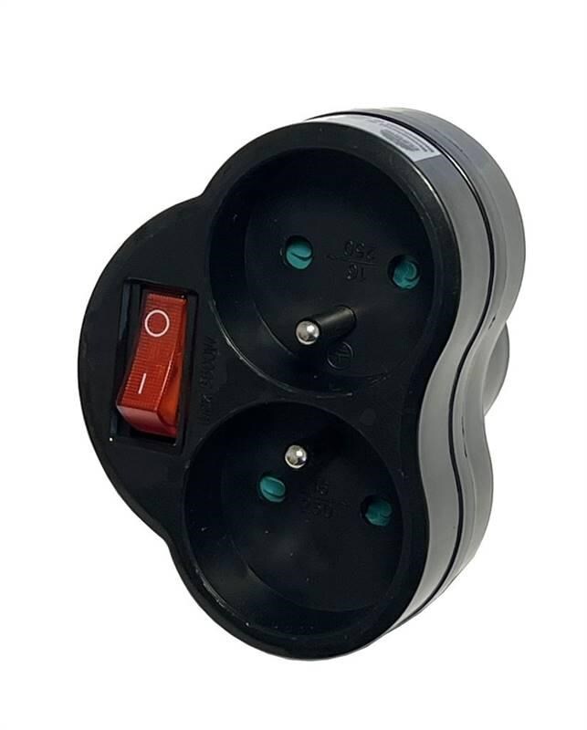 Konnoc DX-R2S rozbočka dvojzásuvka s vypínačem černá