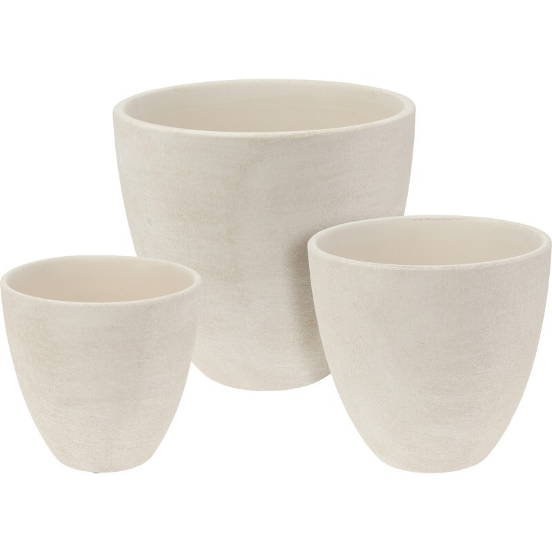 Elegantní sada tří bílých květináčů s moderním designem, který skvěle doplní jakýkoli interiér i exteriér. Různé velikosti umožňují univerzální využití pro menší i větší rostliny.