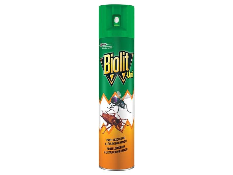 BIOLIT UNI sprej proti létajícímu a lezoucímu hmyzu 300ml Insekticidní aerosolový přípravek, specialista na hubení létajícího i lezoucího hmyzu. Díky unikátnímu rozprašovači lze zasáhnout letící hmyz z bezpečné vzdálenosti. Nová receptura zaručuje okamžitý účinek, zabijí...
