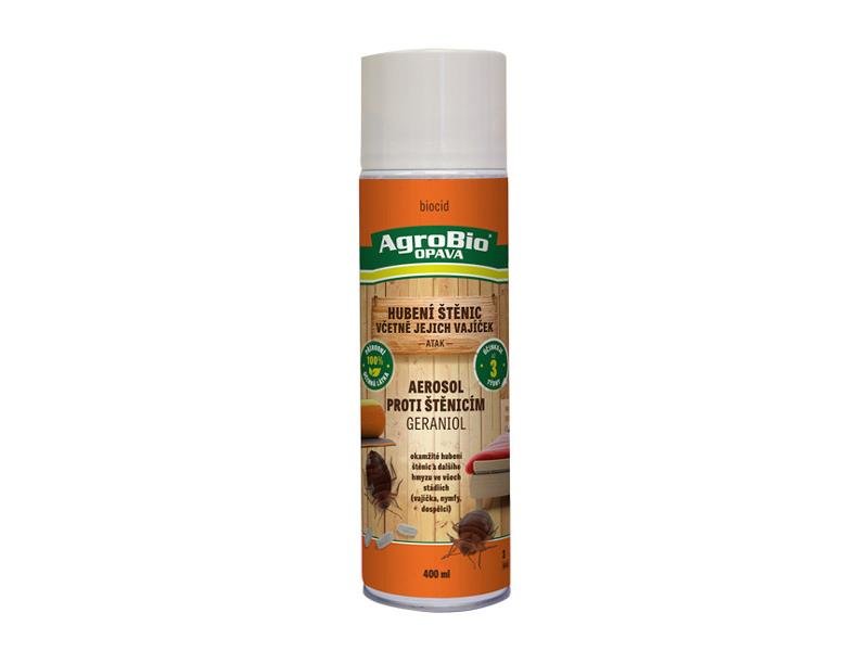 Aerosol pro hubení štěnic, včetně jejich vajíček v bytech, kancelářích, hotelích, ubytovnách, aj. Obsahuje přírodní účinnou látku Geraniol.