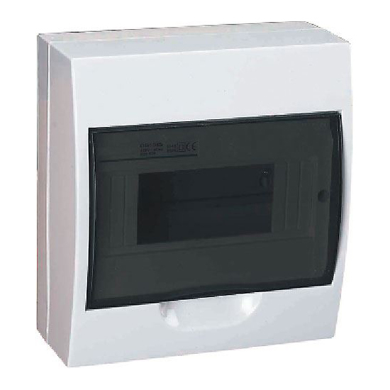 Rozvaděč TSM-8 plastový 1x8P nástěnný.Technické parametry:- rozměry 184mm(D)x210m­m(V)x100mm(H)- kouřová transparentní dvířka- jmenovité napětí 400V- kovová DIN lišta- svorkovnice- krytí IP40- třída izolace II prečítať celé