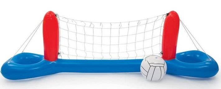 Volejbalový set pro letní zábavu ve vodě. Jednoduše ho nafouknete, připojíte síť a umístíte do bazénu. Děti i dospělí si tak můžu zdokonalit své volejbalové dovednosti a užít si legraci ve vodě v letním počasí. Součástí setu je volejbalový míč, nylonová síť i záplata na opravu. Vlastnosti - pojistné ventily, otestovaný vinyl, nylonová síť. Určeno pro použití ve vodě. Vhodné pro děti od 3 let. Rozměry - 2,44 x 64 cm, průměr míče 41 cm.