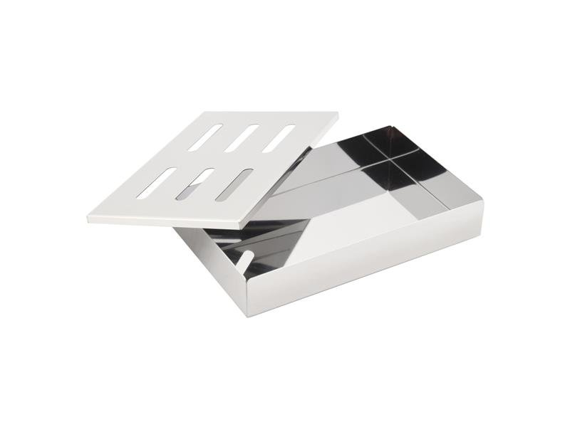 Praktický box pro uzení v klasickém grilku, či přidání uzené chuti grilovaným pokrmům.Technické parametry:- rozměry boxu: 21 x 13 x 3,5 cm- vhodná náplň: dřevěná štěpka- materiál: nerezová ocel prečítať celé