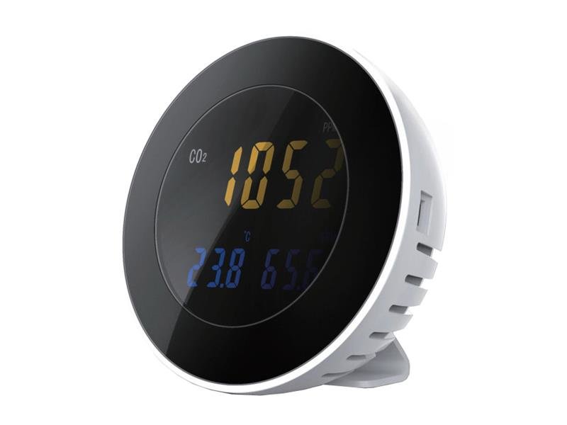 Designový detektor CO2 (monitor 'vydýchaného vzduchu) , svým provedením je vhodný např. do bytu či kanceláře, na LCD displeji zobrazuje úroveň CO2, teplotu a vlhkost. Měřené údaje se ukládají do paměti zařízení, po připojení k PC můžete uložené údaje stáhnout a zobrazit v tabulce a grafu.