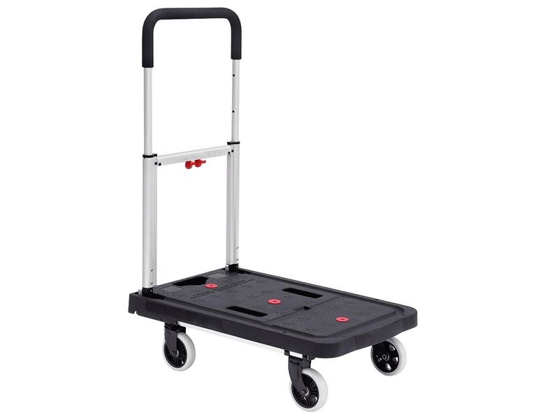 Skladací vozík JAD 15632 je navrhnutý pre maximálne pohodlie a efektivitu pri manipulácii s nákladom. Vďaka jednoduchému systému skladania, ktorý jedným ťahom zkompletuje alebo rozloží celý vozík vrátane kolies, ho ľahko uskladníte aj prepravíte. Teleskopická rukoväť s možnosťou nastavenia v troch polohách umožňuje prispôsobiť vozík vašej výške a zaručuje pohodlnú manipuláciu bez zbytočnej námahy.