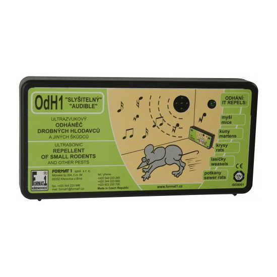 Zvukově-ultrazvukový elektronický odháněč myší, kun, krys, lasiček a potkanů. Jedná se o ryze český produkt s dlouholetou tradicí na trhu (od r. 1991) vyráběný přímo u nás ve firmě FORMAT1 spol. s r. o. Spolehlivý, výkonný, za dobu více jak 29 let ověřený mnoha zákazníky. Neškodný jak pro člověka a domácí hospodářská zvířata.