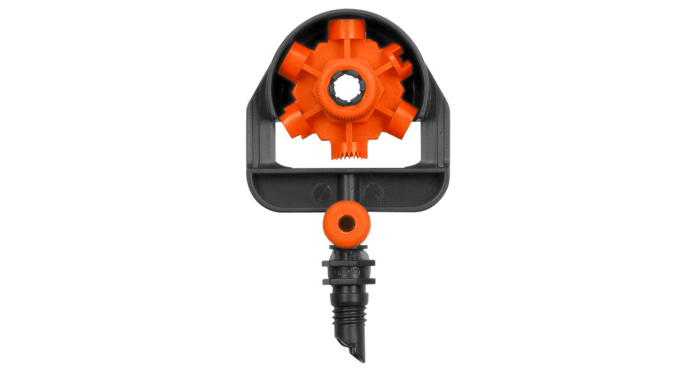 6-plošná rozprašovací tryska od společnosti GARDENA jako součást systému GARDENA Micro-Drip-System je ideální pro flexibilní zavlažování. Díky otočnému knoflíku lze nastavit požadovaný tvar. Možné tvary: 90°, 180°, 270°, 360°, pruhy a zakončovací pruhy. Pro ještě větší flexibilitu lze samostatně...