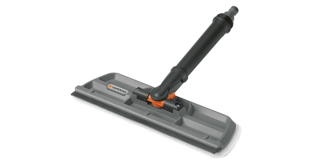 Čistič oken se stěrkou od společnosti GARDENA je připojen k přívodu vody a je vybaven přípojkou Original GARDENA systému. S čističem oken se stěrkou od společnosti GARDENA získáte dva produkty v jednom. Pomocí textilie z mikrovláken navlhčíte skleněný povrch a pomocí stěrky vodu ze skla setřete....