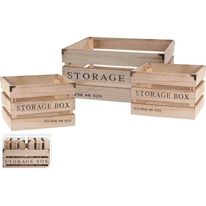 CRATE WOOD MDF SET 3PCS, WITH BLACK WORDING 'STORAGE BOX', EACH PIECE WITH BARCODE ETC ON THE BOTTOM, TOTAL WEIGHT SET 2125 GRAM/ CRATE WOOD LARGE(8719202 021950), 360X270X175MM, Barcode Sticker (SB22)/ 2 CRATE WOOD SMALL(8719202 021929), 240X185X160MM, Barcode Sticker (SB22) / CFT 4,59,(3.151/40ft HQ)