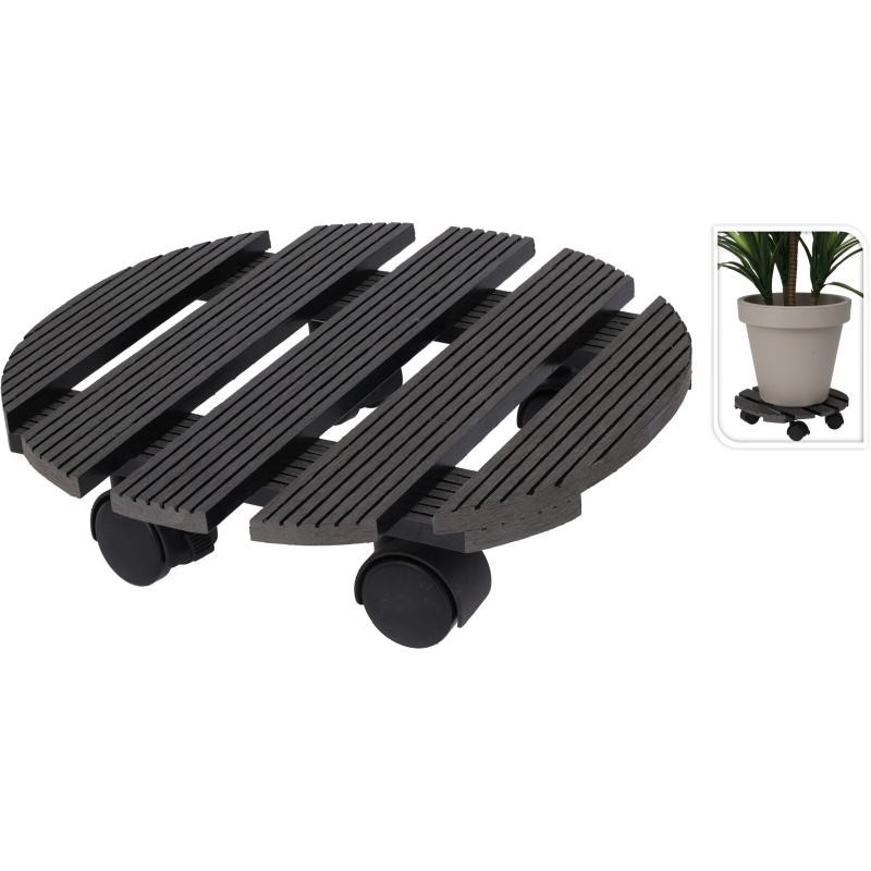 FLOWER TROLLEY, WOOD AND PE MATERIAL, ROUND MODEL WITH 4 CASTOR WHEELS, SIZE DIA 29CM, WEIGHT 1.1KG, IN GREY COLOUR WITH BLACK WHEELS, EACH PIECE WITH SMALL COLOUR HANGTAG CARRY WEIGHT 100KG/ 290X290X75MM, Hangtag (HT) / CFT 0,71,(14.700/40ft HQ) prečítať celé