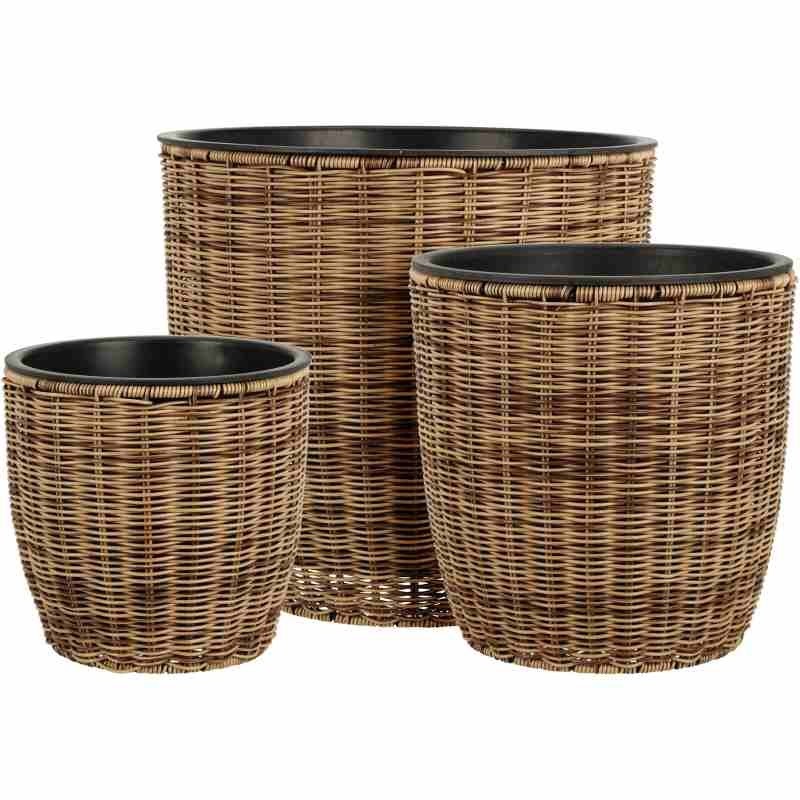 PLANT POT ROUND WITH PLASTIC INSERT POT, POLY RATTAN, SET OF 3PCS: 1. DIA 25CM X HEIGHT 23CM, 2. DIA 31CM X HEIGHT 30CM, 3. DIA 40CM X HEIGHT 36CM, BROWN COLOUR (3BR20), EACH PIECE WITH HANGTAG, ASS.:3 Sizes, Hangtag (HT21)/ PLANT POT ROUND D25H23CM(8720573 856393), 250X250X230MM, Hangtag (HT21)/...