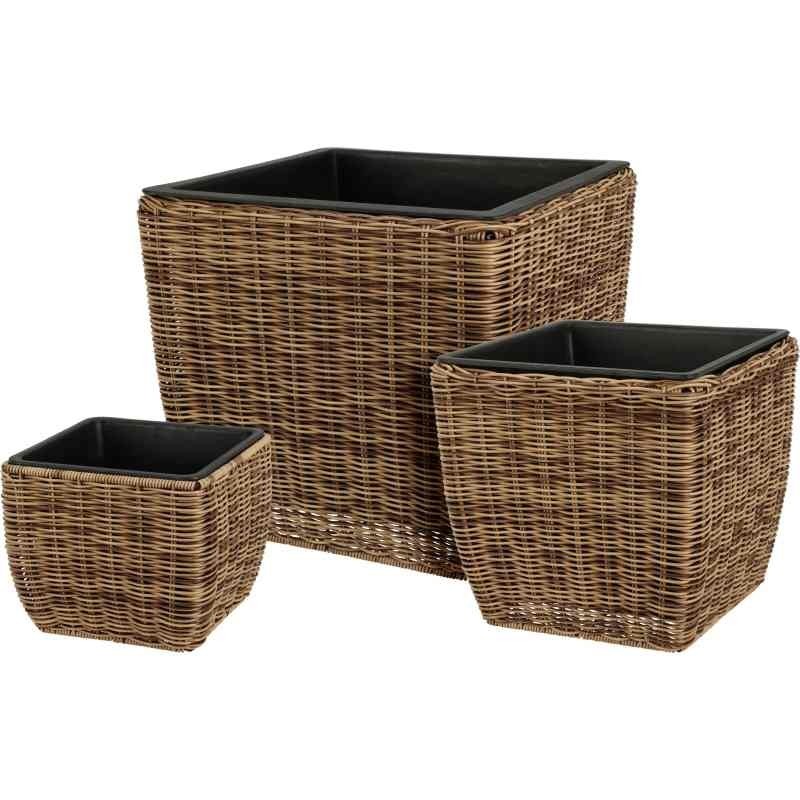 PLANT POT SQUARE WITH PLASTIC INSERT POT, POLY RATTAN, SET OF 3PCS: 1. 21X21XH18CM, 2. 28X28XH26CM, 3. 36X36XH32CM, BROWN COLOUR (3BR20), EACH PIECE WITH HANGTAG, ASS.:3 Sizes, Hangtag (HT21)/ PLANT POT SQUARE 21X21X18CM(8720573 856461), 210X210X180MM, Hangtag (HT21)/ PLANT POT SQUARE...
