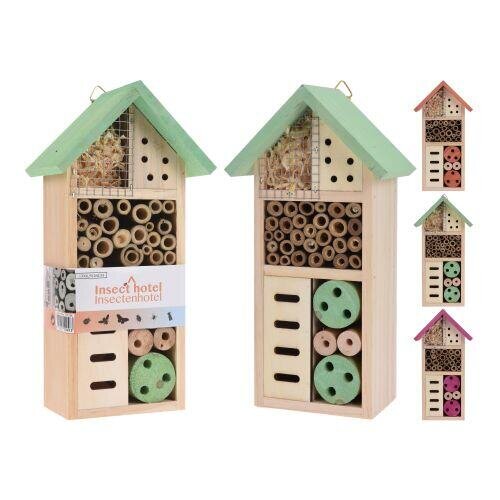 Jeho rozmery 26 x 13 x 8,5 cm sú ideálne pre rôzne druhy hmyzu, pričom materiál z dreva je ekologický a šetrný k prírode. Hotel je možné jednoducho zavesiť alebo postaviť na slnečnom a chránenom mieste v blízkosti kvetín či ovocných stromov, kde hmyz nájde dostatok potravy. Údržba je jednoduchá - stačí občas vymeniť starý materiál za nový, čím zabezpečíte, že zostane atraktívny pre svojich obyvateľov.