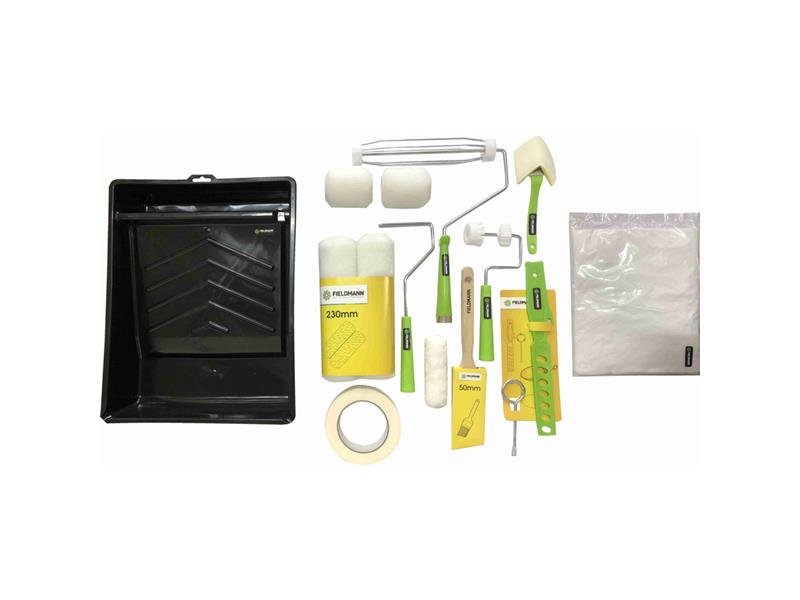Sada malířská FIELDMANN FDMV 1401 Sada na malování 15 ks2x 230 mm polyesterové válečky2x polyesterové válečky 2x 75 mm1x 230mm zásobník na barvu1x rámeček 230 mm1x rámeček 75 mm1x štětec 50 mm1x otvírák na plechovky barev1x míchadlo na barvu1x válečkový rám 100 mm1x...