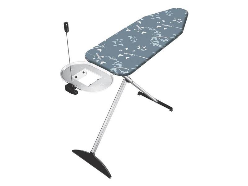 Žehlicí prkno VILEDA Total Reflect + je stabilní, bezpečné, s variabilně nastavitelnou výškou a extra velkou žehlící plochou. Pro maximální pohodlí při používání je vybaveno integrovanou elektrickou zásuvkou. Díky multifunkční odkládací ploše je vhodné i pro parní generátory.