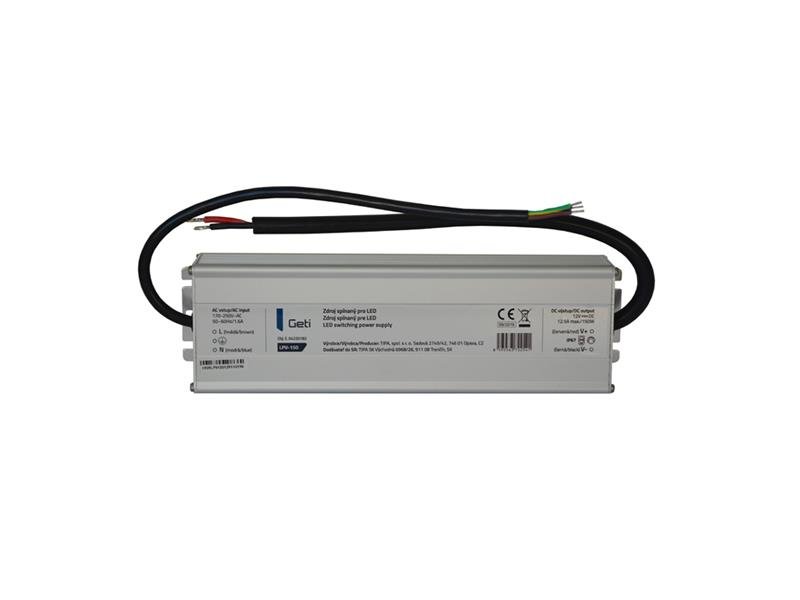 Zdroj spínaný pro LED 12V/150W Geti LPV-150 Spínaný zdroj konstantního napětí LPV-150, s výstupním napětím 12V je vhodný pro napájení LED pásků. Vysoký stupeň krytí IP67 zajišťuje ochranu proti prachu a vodě. Parametry produktů: Kovové pouzdroS kabelovými konci na vstupu...