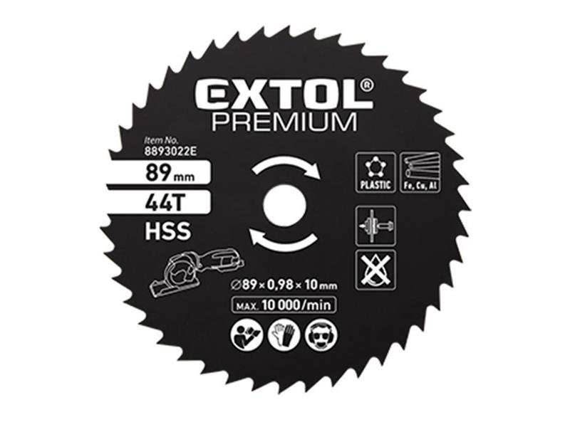 Kotouč pilový HSS, Ř89x1x10mm, 44T, EXTOL PREMIUM