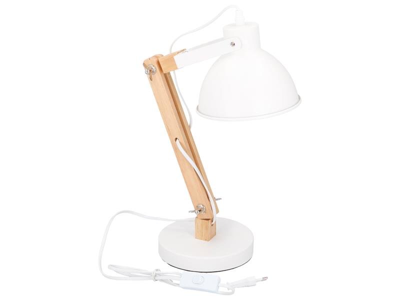 Dekorativní stolní lampa ve dřevěném provedení se sklopitelnou hlavou. Lampa Grundig je uzpůsobena na žárovky se závitem E14.
