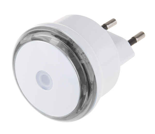 LED noční světlo do zásuvky v bílé barvě. Zdrojem světla je 3x LED. Noční LED světlo automaticky rozlišuje den a noc, automaticky se zapíná a vypíná. <br/><br/>- napájení: 230V~, 50Hz, max. 0,5W <br/>- zdroj světla: 3 x LED 5mm <br/>- automatické zapnutí / vypnutí <br/>- průměr: 50 mm <br/>- prodejní obal: 1 ks, blistr <br/>- rozměry: 50 x 70 mm <br/><br/>Výhody a přidaná hodnota: <br/><br/>- nízká spotřeba energie <br/>- malé rozměry <br/>- detekce intenzity světla <br/>