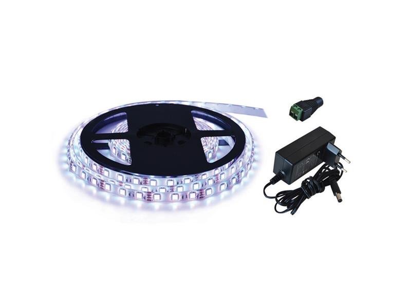 Cenově zvýhodněná sada: 2,5m LED pásek 12V 2835 60LED/m IP65 6W/m bílá studená (magnetický) + napájecí zdroj 12V DC + propojovací DC konektor.