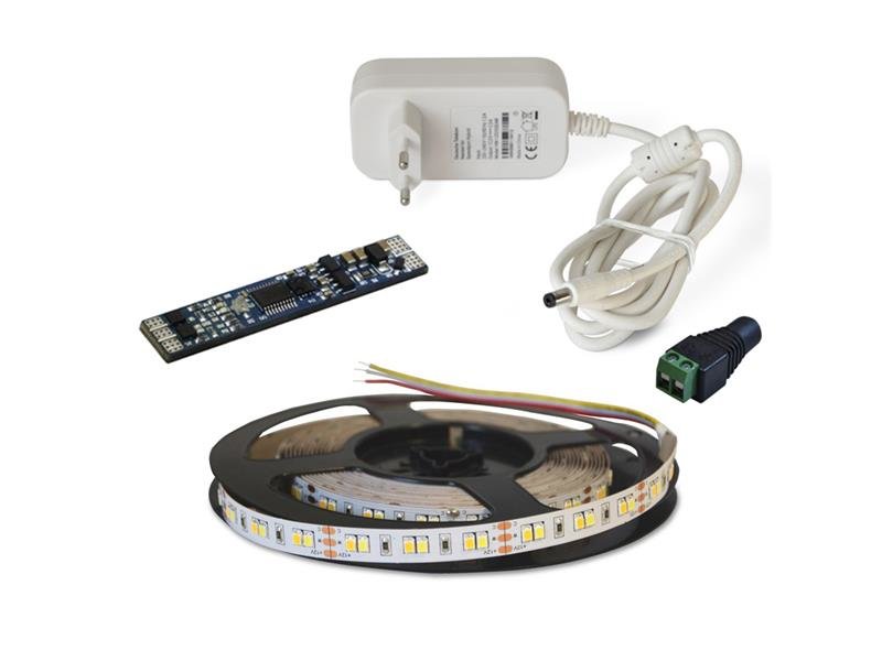 LED pásek sada 2,5m 12V 3527 120LED/m IP20 9,6W/m CCT (WW+CW) + Proximity kontroler + zdroj