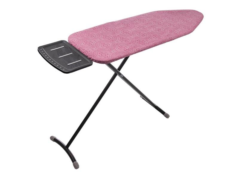 Žehlicí prkno METAL s nastavitelnou výškou 67-90 cm lze polohovat do 7 úrovní. Umožní tedy i pohodlné žehlení vsedě. Nabízí prostornou žehlicí plochu s praktickým odkládacím prostorem pro horkou žehličku se silikonovými prvky (max 220 °C), které zabraňují poškození plochy žehličky i žehličky...