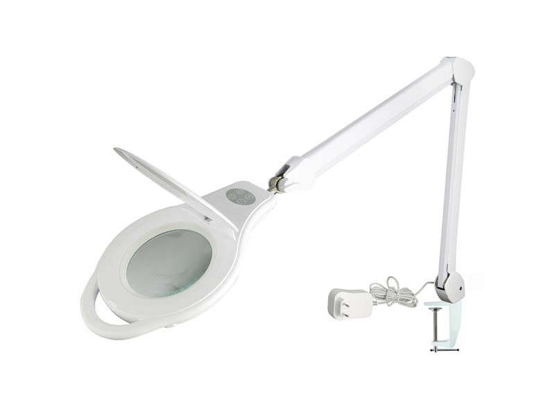 Univerzální, výkonná, ale úsporná stolní lupa s osvětlením - 96 SMD LED. Je ideální pro použití v domácnosti, kancelářích, dílnách, obchodech atd. Lze ji využít i jako stolní lampu. Kvalitní skleněná čočka (5 dioptrií) je vhodná pro jemnou práci. Lupa je vybavena krytem čočky a dlouhým ramenem pro velký rozsah pohybu. Výhodou této lupy je možnost změnit teplotní barvu a intenzitu světla (stmívač) pomocí dotykových ovladacích tlačítek na hlavě lupy. Barvu světla je možno měnit v režimu bílá teplá, bílá přírodní a studená bílá.