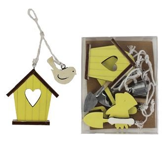 Sada zahradních dekorací. Sada obsahuje 10 dekorací. Rozměry : 2,5 - 7 x 0,4 cm, výška 7,5 cm. Barva : kombinace žlutá s bílou. Materiál : dřevo, plech. prečítať celé