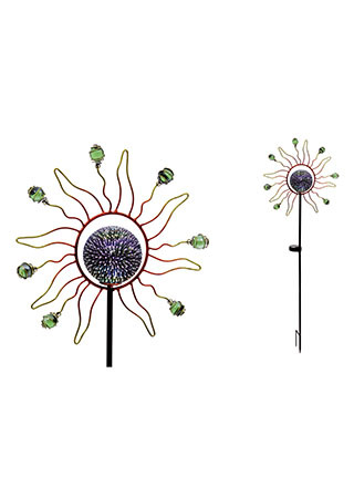 Slnko s LED svetlom, kovová záhradná dekorácia, zápich (batérie na solárny dobíja)