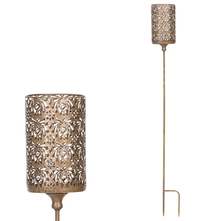 Svícen kovový - zahradní zápich, se sklem. - skladom, mierne poškodený kus