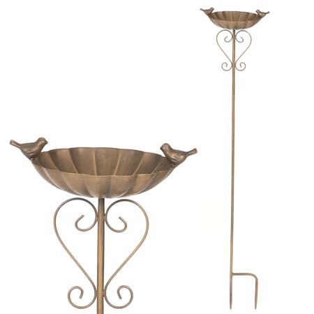 Zápich kovový - zahradní dekorace, list s ptáčkem.
