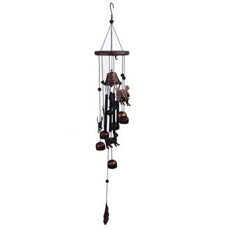 Závěsná zvonkohra s motivem koček.Zvonkohra je vhodná pro venkovní i vnitřní použití.Rozměry : 10 x 10 cm, délka 73 cm.Barva : měděná.Materiál na bázi dřeva, kov. prečítať celé