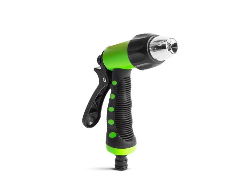 Kvalitní plastová polévací pistole se 3 druhy proudu vody, takže zaručeně najdete proud vody, který potřebujete, ať už je to sprej nebo tenký proud vody. Pomocí rychlospojky lze snadno přenášet z jednoho konce zavlažovací hadice na druhý. Díky opěrnému ramenu není třeba držet spoušť po celou dobu zavlažování.