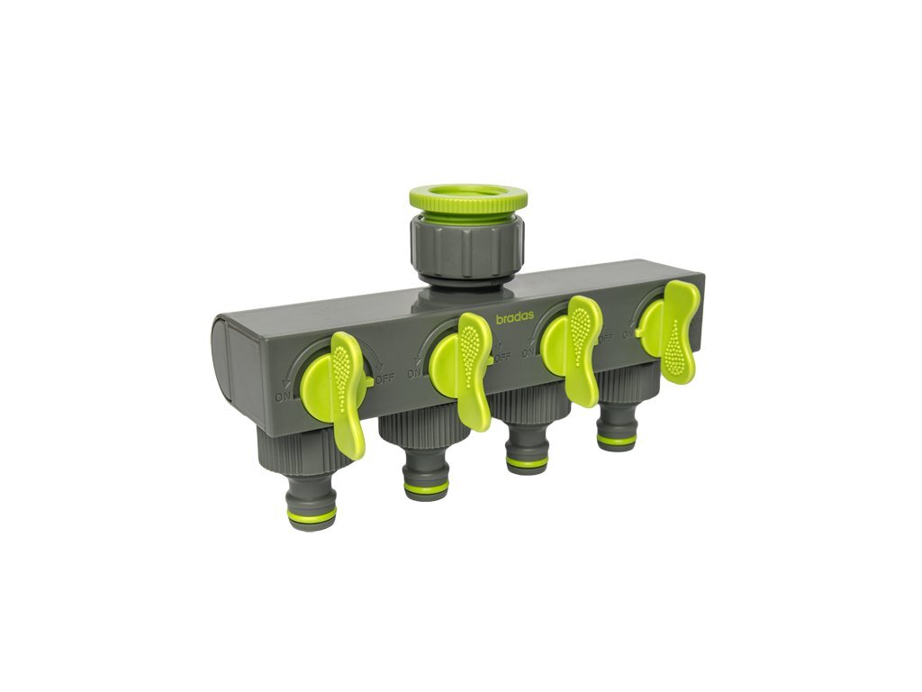 LIME LINE rozdělovač, 4-cestný ventil 1"-3/4"Rozdělovač se čtyřmi nezávisle na sobě nastavitelnými ventily na kohoutek 1" s redukcemi 3/4". prečítať celé