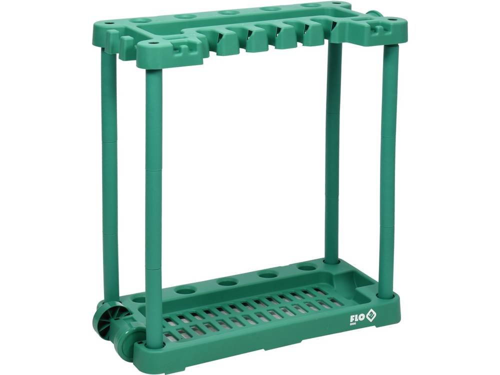 Praktické řešení pro uložení dlouhého zahradnického nářadí jako jsou motyky, lopaty, vidle, ale i drobného ručního nářadí nebo prodlužovaček. Přední rukojeti umožňují uložení nářadí hlavou směřující dolů, takže nepřidávají na hmotnosti stojanu.