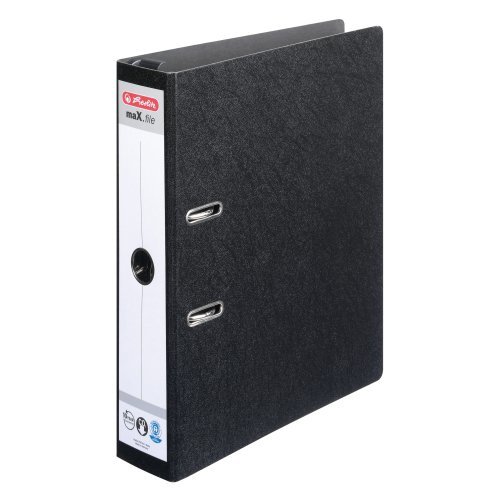 maX.file, s vysouvacím závěsným mechanismem, tvrzená lepenka, štítek na hřbetu, páková mechanika, prstokroužek, radokroužek, černý prečítať celé