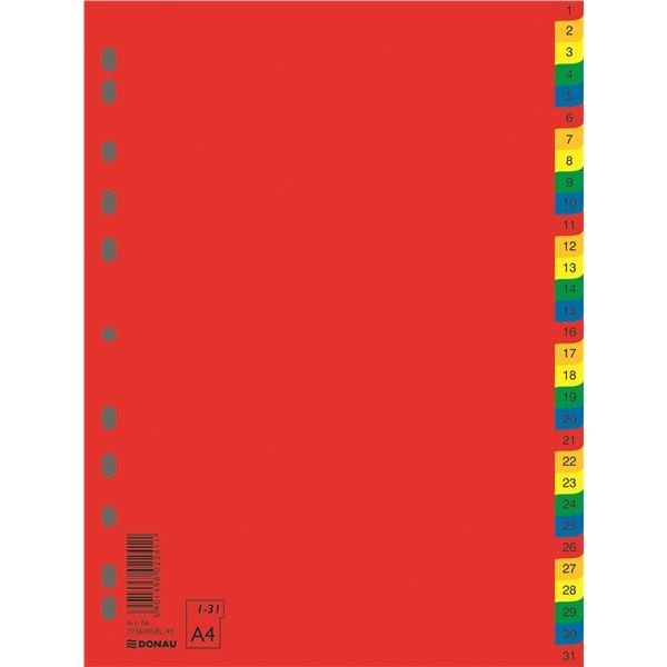 Plastové rozlišovače Donau - A4,barevný,sada 1-31