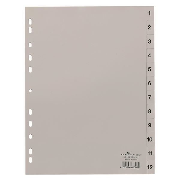 Plastový rozlišovač Durable - A4, šedý, 1-12