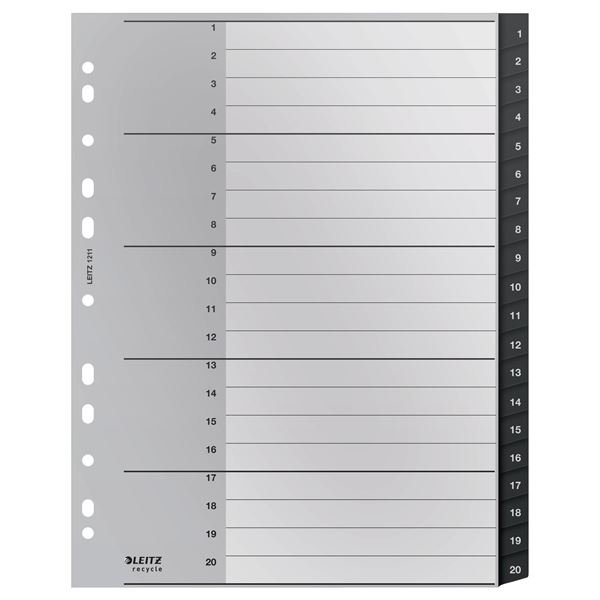 Plast.rozliš.Leitz RECYCLE-A4,eko.,sada 1-20,šedé