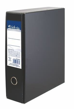 Pákový pořadač s obalem, černý, 75 mm, A4, karton, VICTORIA