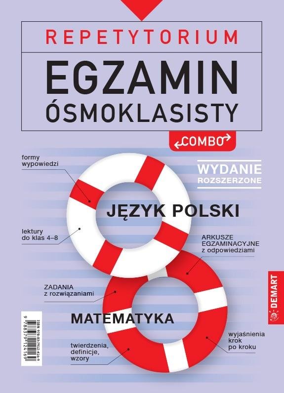 Combo egzaminacyjne służy przygotowaniu ósmoklasisty do obowiązkowego egzaminu na zakończenie szkoły podstawowej. Zawiera materiał z języka polskiego i matematyki opracowany według założeń nowej podstawy programowej. Jest to więc obowiązkowy zasób egzaminacyjny dla każdego ucznia (język obcy...