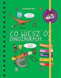 To kolejna książka z serii popularnonaukowej dla młodszych dzieci w wieku od 6 do 10 lat. Tym razem kolejne pytania i odpowiedzi dotyczą dinozaurów ich rodzajów, budowy, zwyczajów i warunków życia. A oto przykładowe pytania: Co jest straszliwą bronią diplodoka? Po czym rozpoznać dinozaura? Jaki jest najmniejszy dinozaur? Czy morskie gady to dinozaury? Jak latają pterozaury? Jak chodzą dinozaury? Dodatkowo: mnóstwo naklejek!