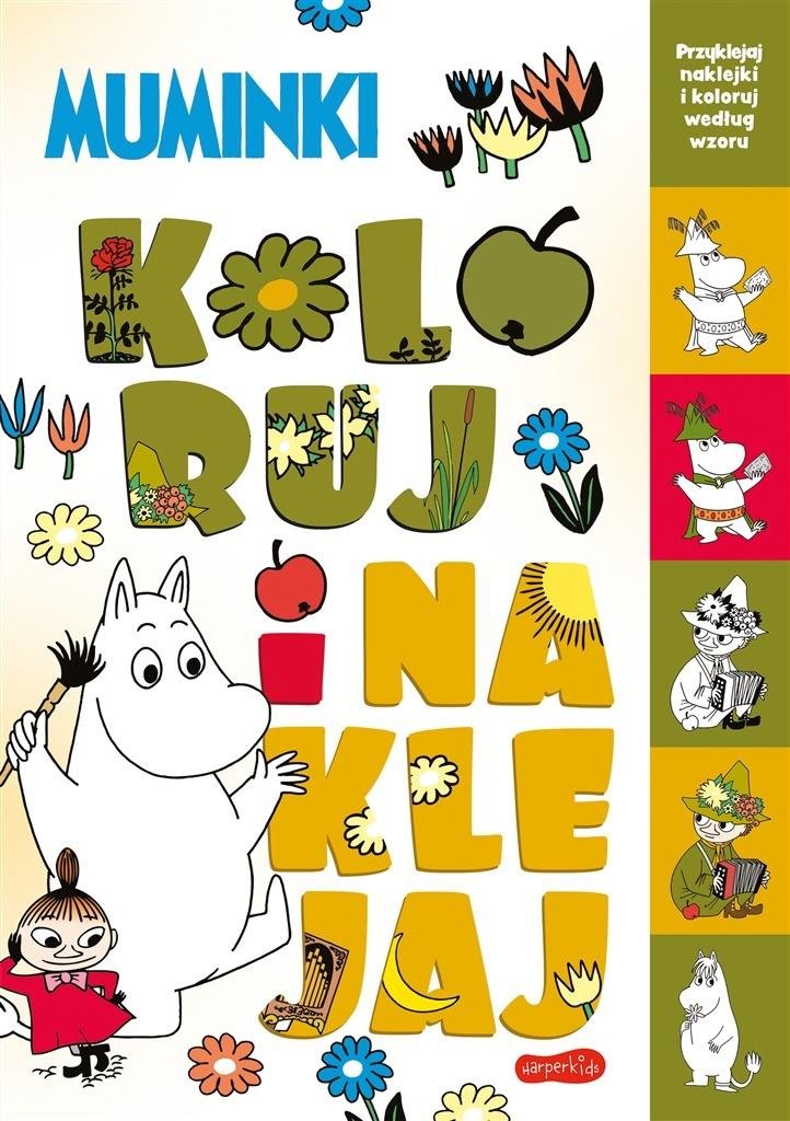 Bardzo prosta kolorowanka z naklejkami, które mogą posłużyć jako kolorystyczna ściągawka dla małego artysty! Naklejkę przedstawiającą wybraną postać z Doliny Muminków wystarczy przykleić na stronie z obrazkiem do pokolorowania, aby móc w każdej chwili sprawdzić, jakie kolory powinny mieć...