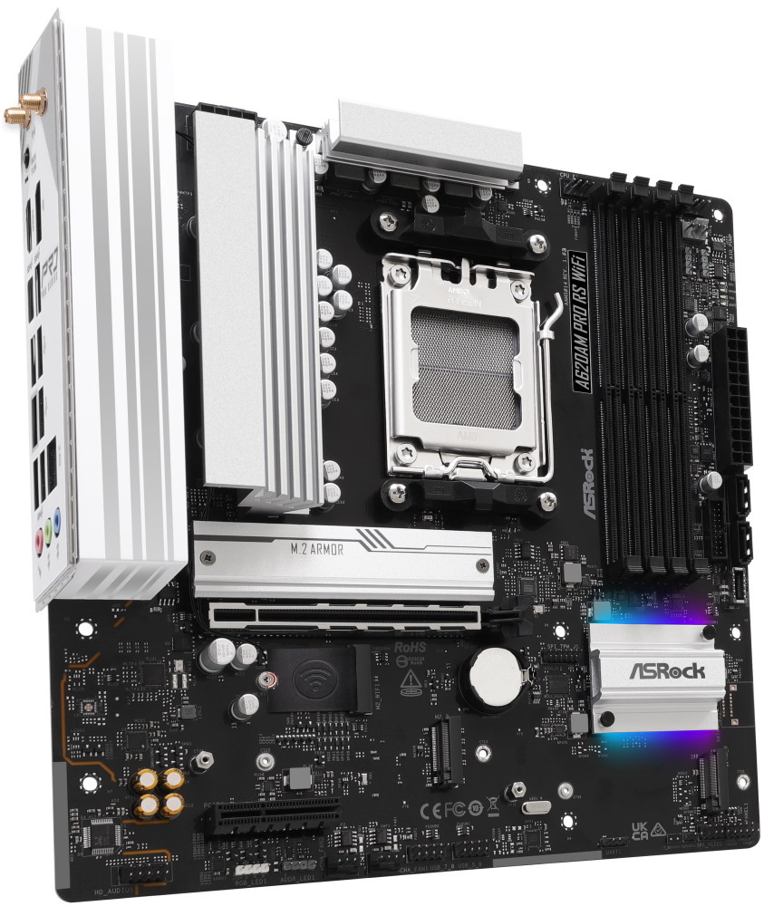 ASRock A620AM PRO RS WIFI (AM5, amd A620A, 4xDDR5 7200MHz, PCIE 4.0, HDMI+DPort, 2xSATA3 +3xM.2, USB3.2 G1, 1x2.5GLAN, m