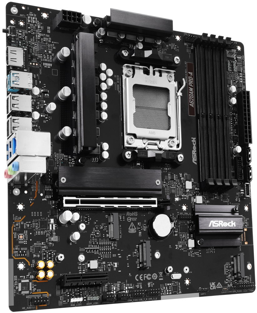 ASRock A620AM PRO-A (AM5, amd A620A, 4xDDR5 8000MHz, PCIE 4.0, HDMI, 2xSATA3 +2xM.2, USB3.2 G1, 1x2.5GLAN, mATX)